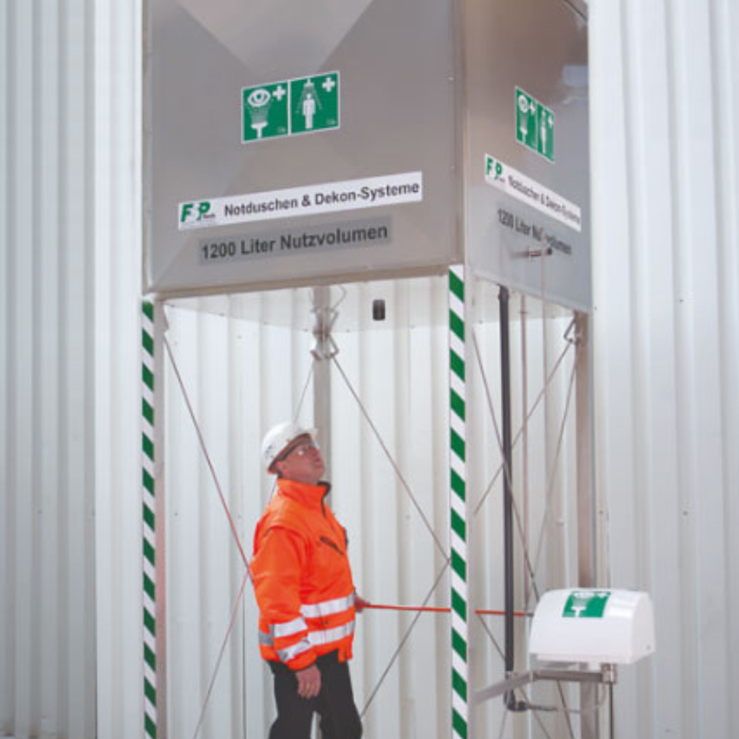 Onze thermo-nooddouche is conform DIN 12899-3:2009, DIN EN 15154-1/-2:2006 en ANSI Z.358.1. Door de proportioneel regelende driewegmengklep en het mengwaterinstelbereik van 20-30°C, is de nooddouche op de ideale temperatuur in te stellen. De douchekop heeft een hoge doorstroomcapaciteit en geeft genoeg water af om het hele lichaam mee te spoelen dankzij het tankvolume van respectievelijk 300 liter of 500 liter (heet water). Zowel het leidingwerk als het plaatwerk van de thermo-nooddouche is gemaakt van hoogwaardig RVS, wat de douche een lange levensduur geeft. Ook de kogelkraan, welke na een draai van 90° volledig is opengedraaid, is van roestvrij staal.